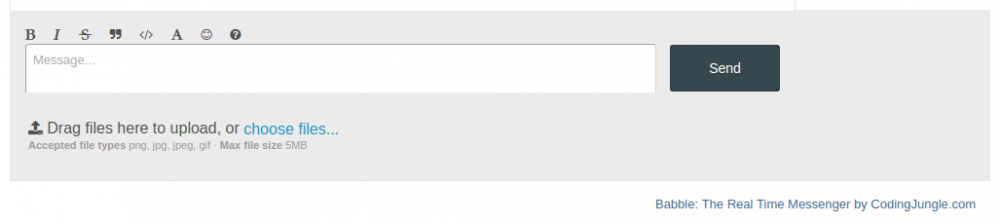 another update video to 3, a lot of the work has gone on behind the scenes, a few of the things on the front end: new/working features: @mentions pop up "who is" typing message in rooms (this might not make it into the final or the service as it does cause some weird cpu spikes at time from my testing, so unless i can find a way to make it more efficient its days might be numbered) popout growing textarea delete/edit messages grouping (chains your messages together till chain is broken) you to the right (your avatar/messages appear on the right instead of the left, everyone else is to the left. looks more like other chat apps) most of the work has taken place in the backend of things, getting everything smoothed out, to make working with babble easier for me and other developers if they so choose. as you can see in the video there are still plenty of bugs left4 points